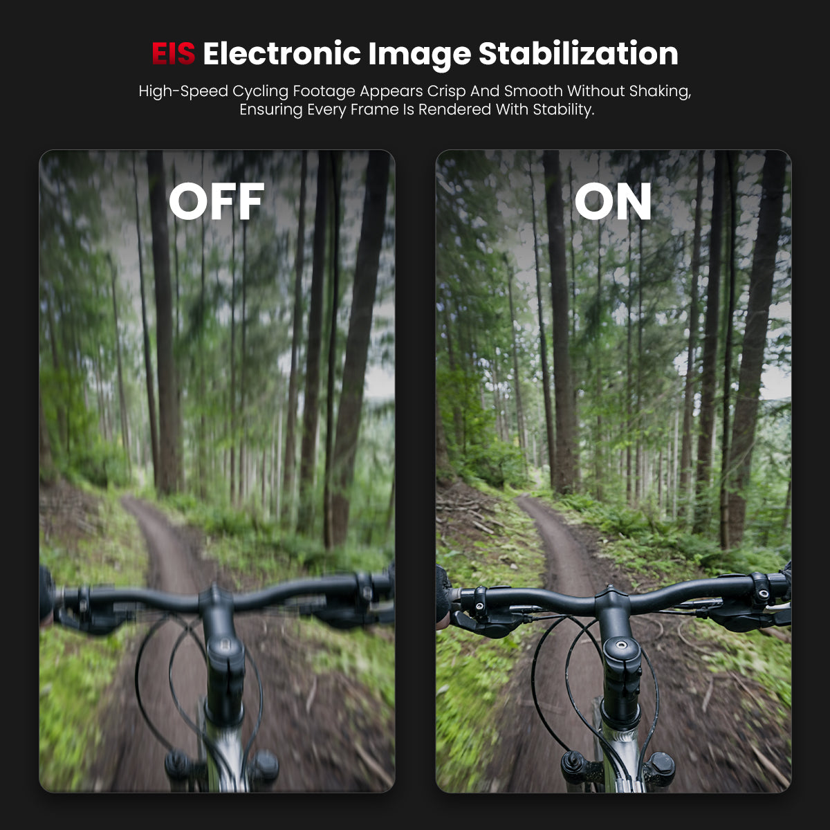 - EIS electronic stabilization keeps footage smooth and clear over bumps and turns.